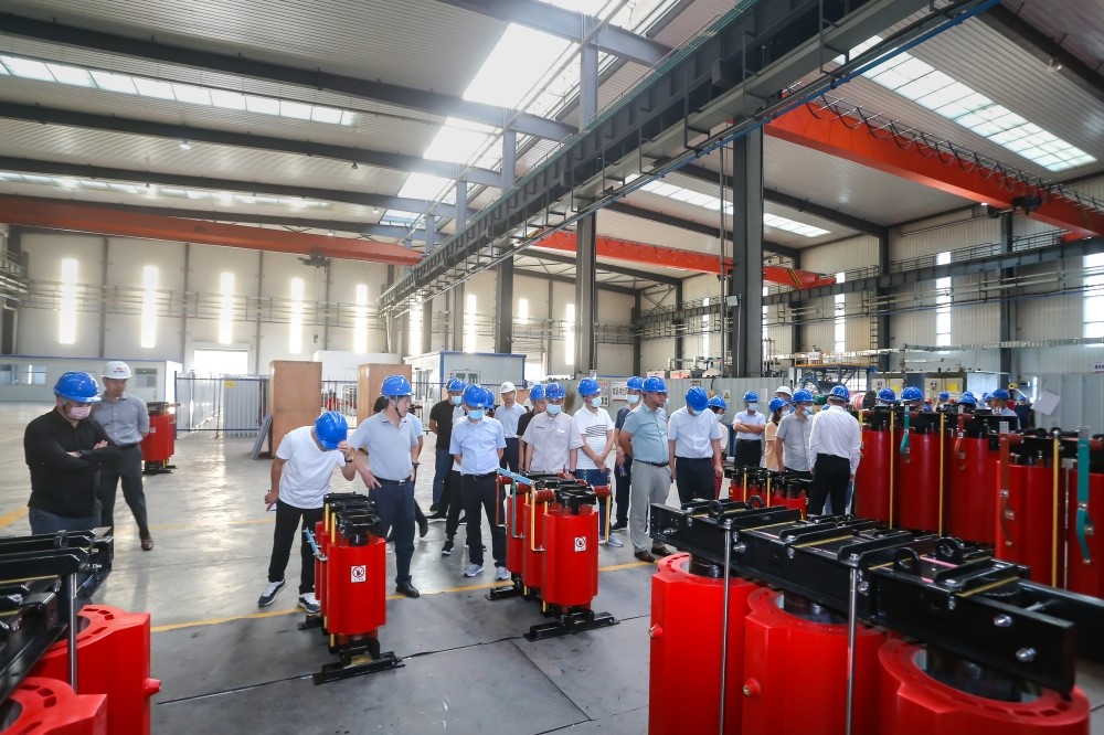 會(huì)議結(jié)束后,全體與會(huì)代表來(lái)到山東哈大電氣有限公司八角工業(yè)園廠區(qū)及鐵抗新車間考察指導(dǎo),圖為與會(huì)代表在展示廳了解哈大的發(fā)展歷程、資質(zhì)及空抗產(chǎn)品、鐵抗產(chǎn)品。