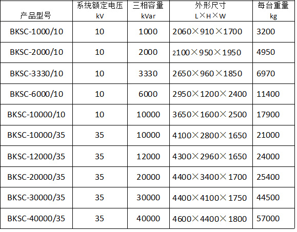6.常用型號并聯(lián)電抗器參數(shù)一覽表